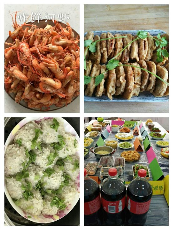 蛋炒槐花、扒皮鱼、红烧鲤鱼、菠萝炒饭、干煸翅中、水果沙拉、自制辣条、炸土豆丝、京酱肉丝等等~